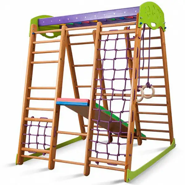 Спортивный комплекс для дома «Карапуз мини» представляет собой, который подходит для детей младшей возрастной категории. Он может выдерживать динамические нагрузки до 40 килограмм. Такой спорткомплекс не займет много свободного места в детской комнате, но станет просто незаменимым местом для спортивных упражнений и увлекательный детских активных игр. Спорткомплекс изготовлен из натуральных экологически чистых материалов, которые абсолютно безопасны для Вашего ребенка. В производстве использовалась высококачественная древесина сосны и бука.