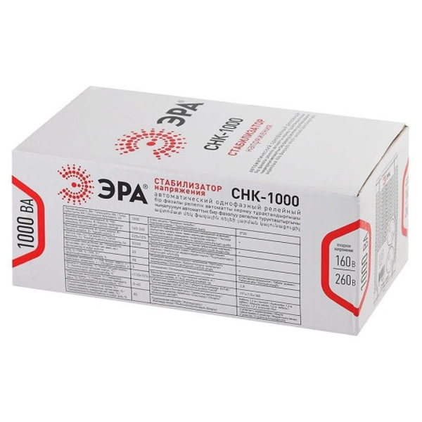 Компактный стабилизатор предназначен для выравнивания входного напряжения и защиты приборов от перепадов напряжения. Диапазон напряжения 160-260В/220В, нагрузка максимальная 1000ВА. Имеет LED дисплей, 2 розетки с заземлением, КПД, %95. Стабилизатор защищает от повышенного напряжения, от пониженного напряжения, и от короткого замыкания. Данный стабилизатор может обеспечивать стабильным питанием - телевизор, DVD проигрыватель, кассовый аппарат, кухонную технику, комппьютеры и смартфоны.