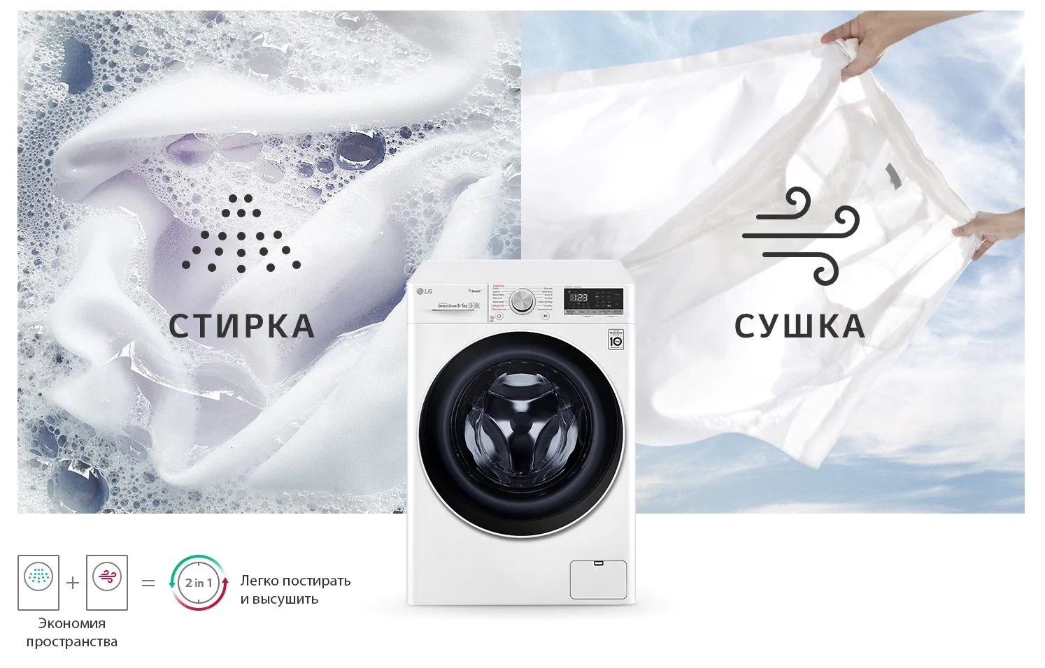 Стиральная машина LG с функцией сушки - это идеальный способ ухода за вашим гардеробом. Стандартная сушка, бережная сушка или легкая сушка для удобной глажки, выбирайте подходящий вам режим.