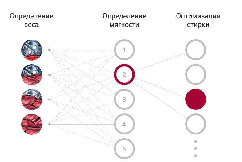 В память стиральной машины заложена база данных из 20 000 возможных сочетаний тканей. Анализ этих данных позволяет подбирать свой алгоритм стирки для каждого типа белья. Как результат - высокое качество стирки и на 18% меньше повреждений ткани.