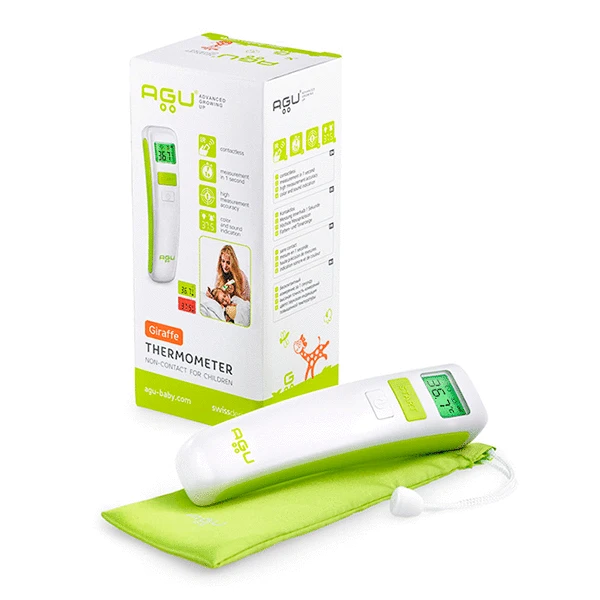 Термометр бесконтактный для детей AGU NC8 Giraffe используется для измерения температуры тела детей и взрослых. Отличается от других термометров тем, что его не нужно ставить под мышку ребенку – измерение происходит без касания к телу. Внутри прибора имеется датчик инфракрасного лазерного излучения, который позволяет определять температуру с высокой точностью. Бесконтактный термометр AGU измеряет температуру, не касаясь ребенка, всего за 1 секунду.