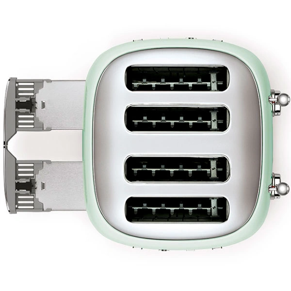 Тостер Smeg прекрасно будет смотреться с другими приборами из серии «стиль 50-х годов». Корпус прибора выполнен из нержавеющей стали, что увеличивает долговечность эксплуатации. Автоматическая центровка гарантирует равномерное и качественное поджаривание тостов. 6 уровней мощности гарантируют качественное поджаривание на любой вкус, а 2 независимые панели управления позволяют настроить различные режимы для разных отделений. Съемным поддоны для сбора крошек упрощают уход за устройством.