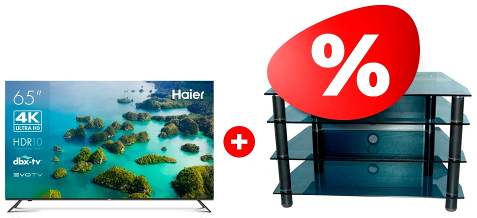 Комплект ТВ тумба Стеклокомплекс ТV-SR 921/4 + LED телевизор Haier 65 S2