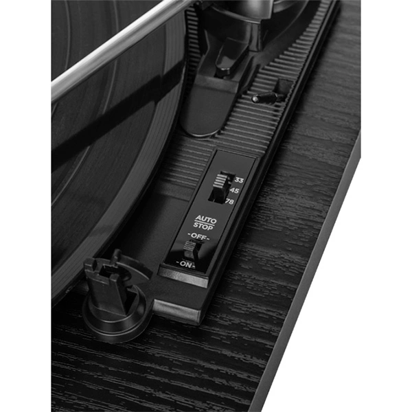 Проигрыватель изготовлен из МДФ и пластика, что обеспечивает долговечность и устойчивость конструкции. Его корпус в классическом черном цвете придает устройству элегантный и современный вид. Устройство оснащено крышкой, которая защищает его от пыли и повреждений, сохраняя внешний вид проигрывателя на долгие годы.