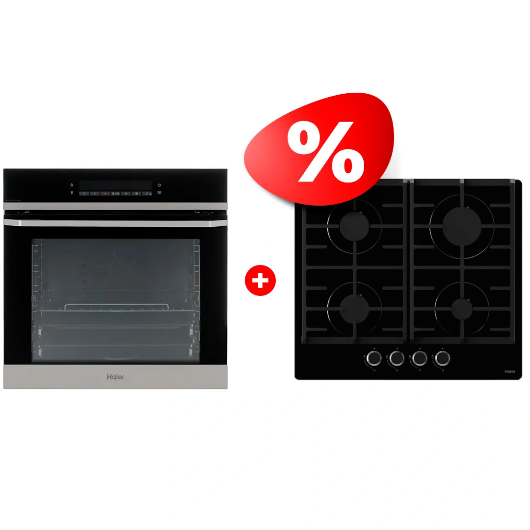 Комплект Встраиваемый духовой шкаф Haier + Газовая варочная поверхность Haier HOQ-P16AS5SX + HHX-G64CNB