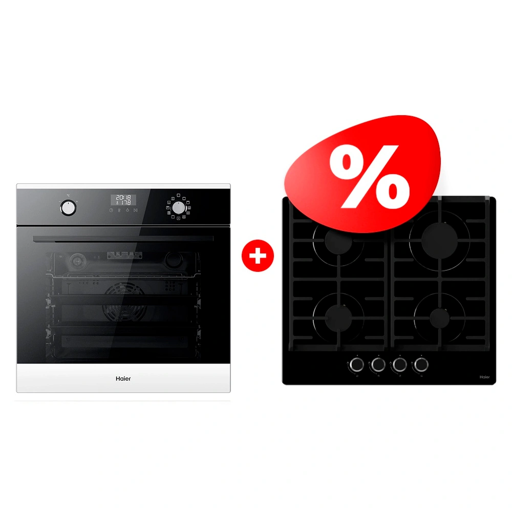 Комплект Встраиваемый духовой шкаф Haier HOX-P11CGBG + Газовая варочная поверхность Haier HHX-G64CNB