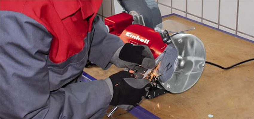 Двигатель точила - асинхронный. Он производит меньше шума и меньше вибрирует в процессе работы. Прочный стеклянный щиток защищает оператора от искр. Точило оснащено RCD штекером.