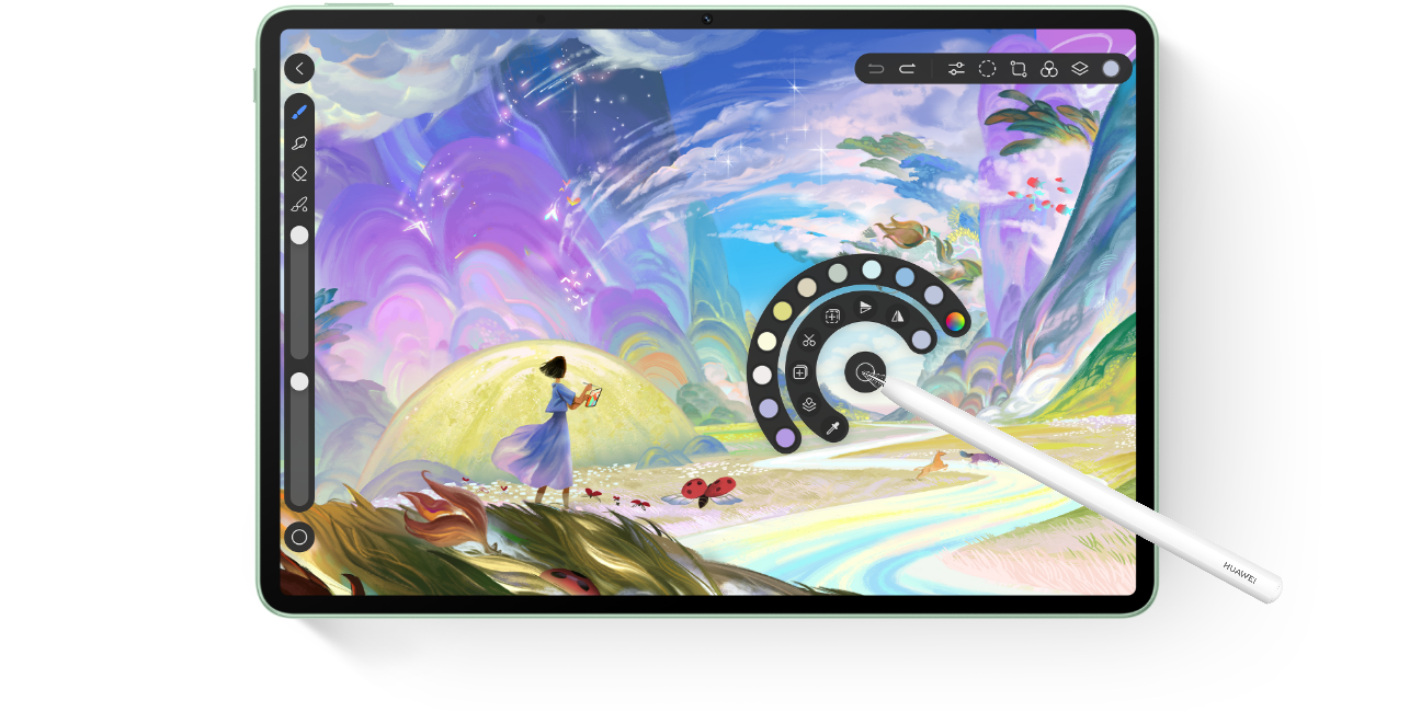 Алдын ала орнатылған ресурстық орталық премиум щеткаларға, кенептерге және сурет салу құралдарына тегін қол жеткізуге мүмкіндік береді. Максималды ыңғайлылық пен жайлылық үшін қажетті құралдарды таратуға болатын сақина мәзірін көрсету үшін M-Pencil Pro стилусын қысыңыз.