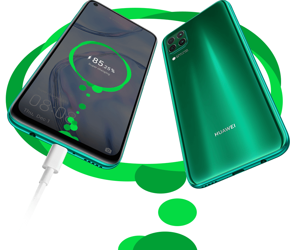 2HUAWEI P40 lite поддерживает максимальную мощность 40 Вт быстрой зарядки HUAWEI SuperCharge.