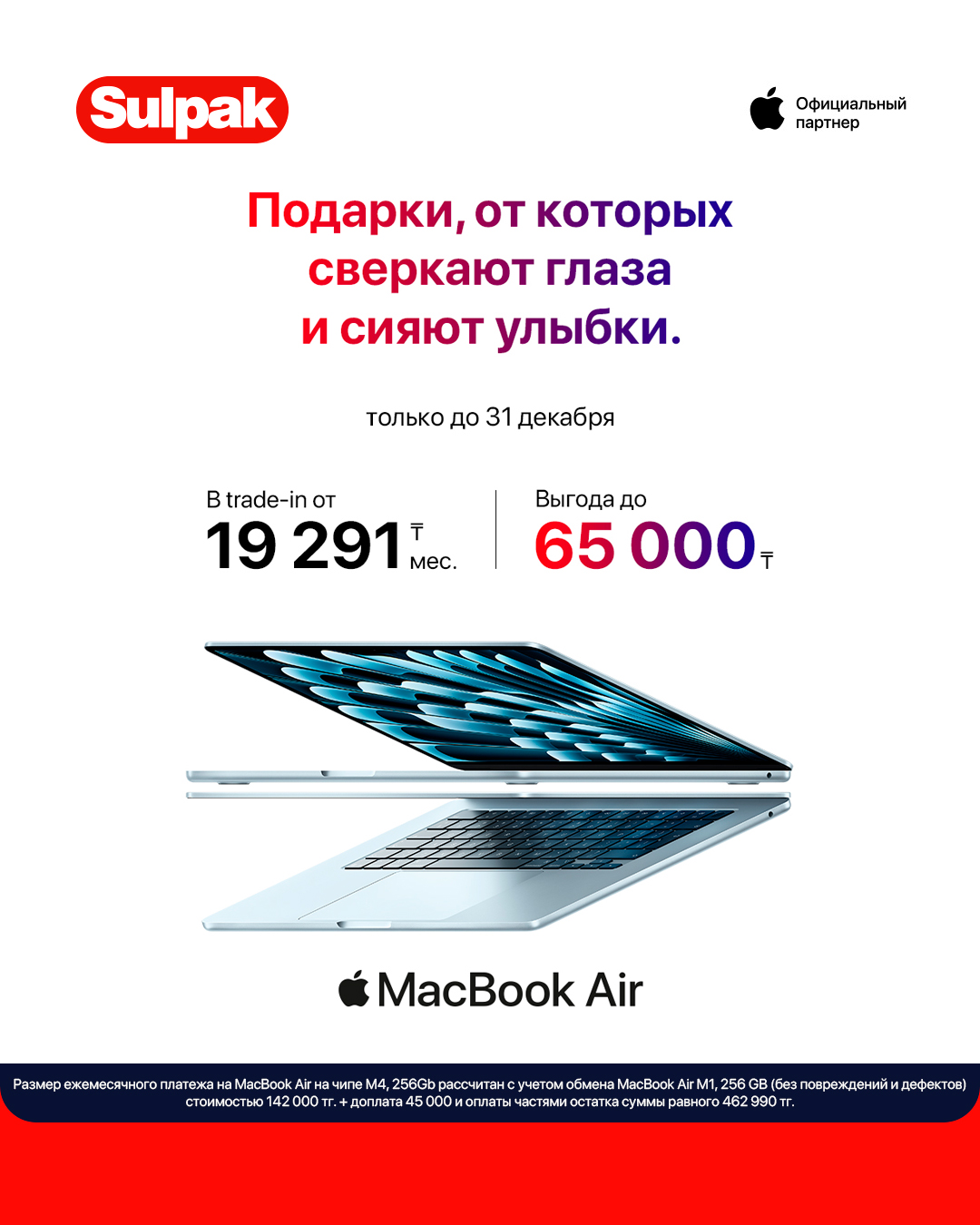 🎄 Sulpak-тағы жаңа жылдық ұсыныстар — Apple техникасын супер бағамен жаңартудың уақыты келді!