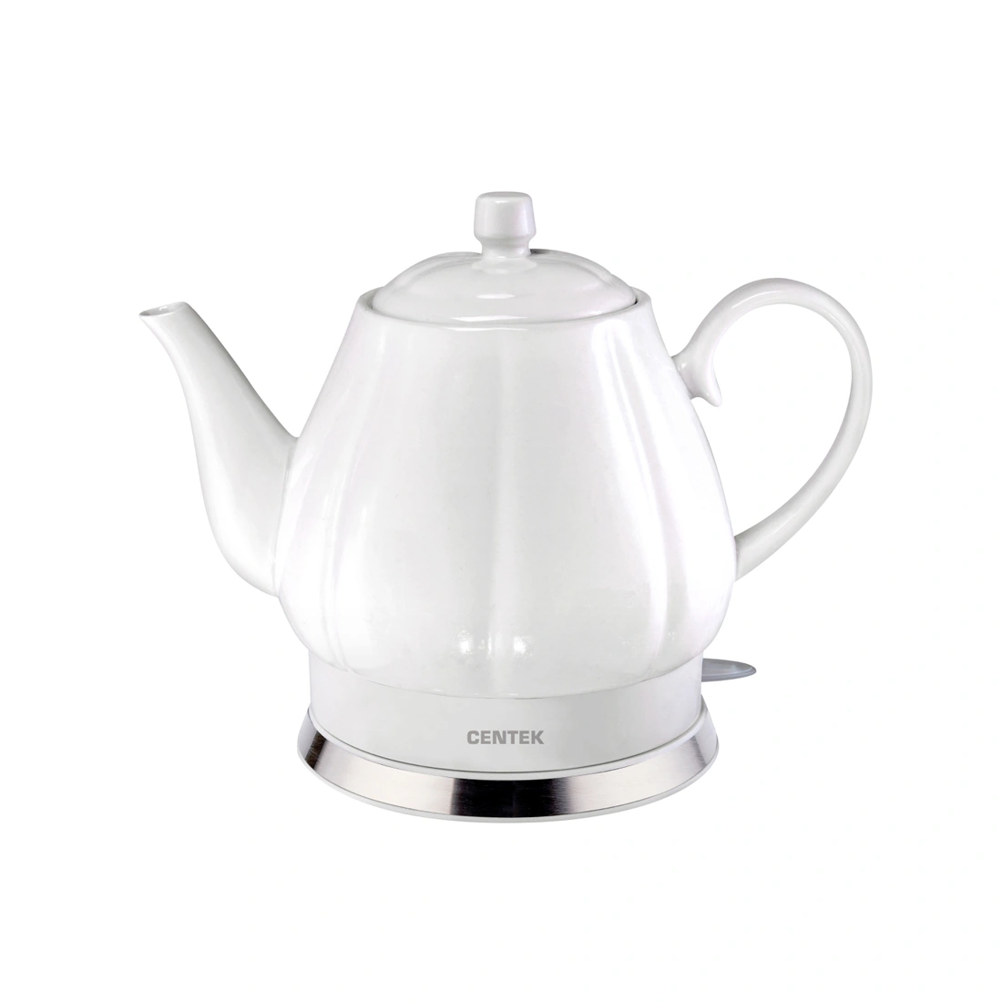 Чайник Centek CT-0062 О товаре Чайник Centek CT-0062 – качественное и надежное изделие объемом 2 л и мощностью 2000 Вт, которое кипятит воду за несколько минут. Скрытый нагревательный элемент дает ряд весомых преимуществ перед моделями с открытой спиралью. К ним относятся: увеличенная теплоотдача, более быстрый нагрев воды и меньшая склонность к образованию накипи. Корпус и крышка выполнены из супербелой керамики, подставка с отделкой из нержавеющей стали. Удобная керамическая ручка чайника не перегревается и не скользит в ладони во время использования. Сливной носик обеспечивает удобное переливание воды. Плотно прилегающая к корпусу крышка обеспечивает герметичность при закипании. Керамический корпус чайника надолго удерживает тепло и прост в уходе. Благодаря автоматическому отключению чайника вам не нужно находиться рядом с прибором во время его работы. Защита от включения без воды предупреждает поломку. Стильный дизайн. Подсветка на кнопке включения. Вращение базы на 360° и отсек для хранения шнура. Важно! Чайники старого образца идут с цветком. Чайники нового образца поставляются без цветка. Кроме наличия изображения чайники никак не отличаются. Основные характеристики Мощность - 2000W Объем - 2.0л Материал корпуса - Керамика Двойные стенки - Нет Внутренняя LED-подсветка - Нет Длина кабеля - 75см Особенности Автоотключение Защита от включения без воды Защита от перегрева