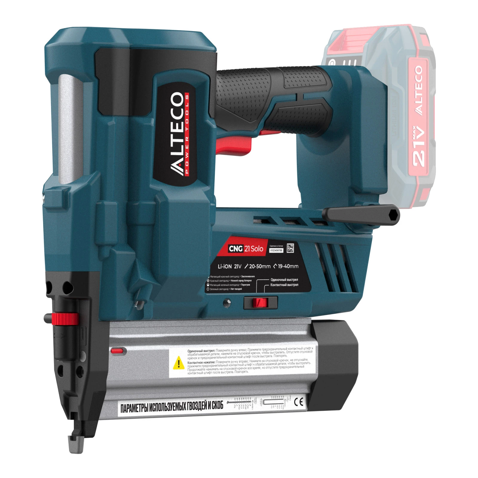 Аккумуляторный гвоздескобозабивной пистолет / нейлер ALTECO CNG 21 Solo (без АКБ И ЗУ)