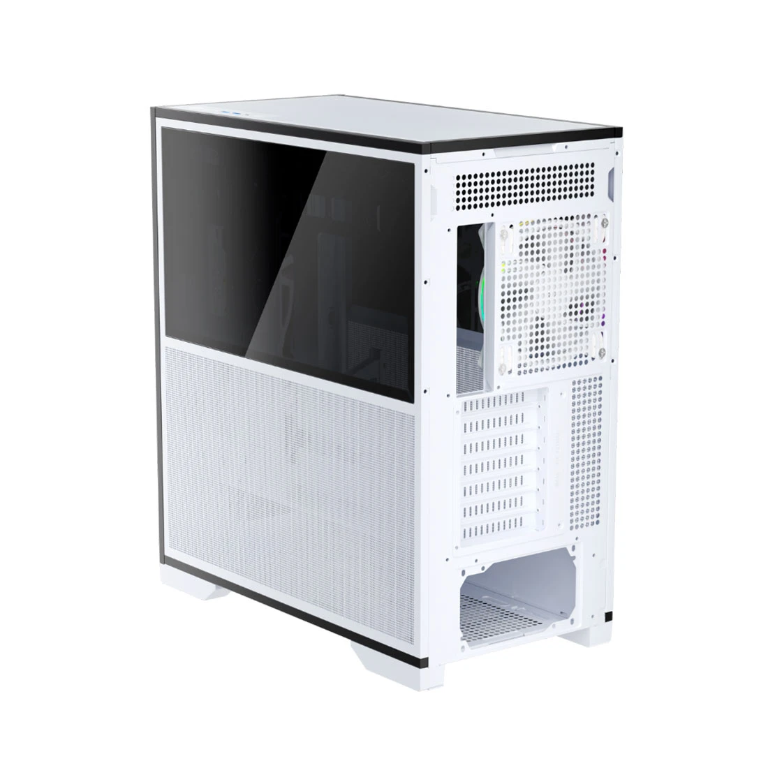 Зеркальное стекло придаст вашему корпусу элегантность и выразительный стиль. Его отражающая поверхность гармонично вписывается в любой интерьер, визуально расширяя пространство и создавая потрясающий эффект благодаря RGB-подсветке и внутренней подсветке.