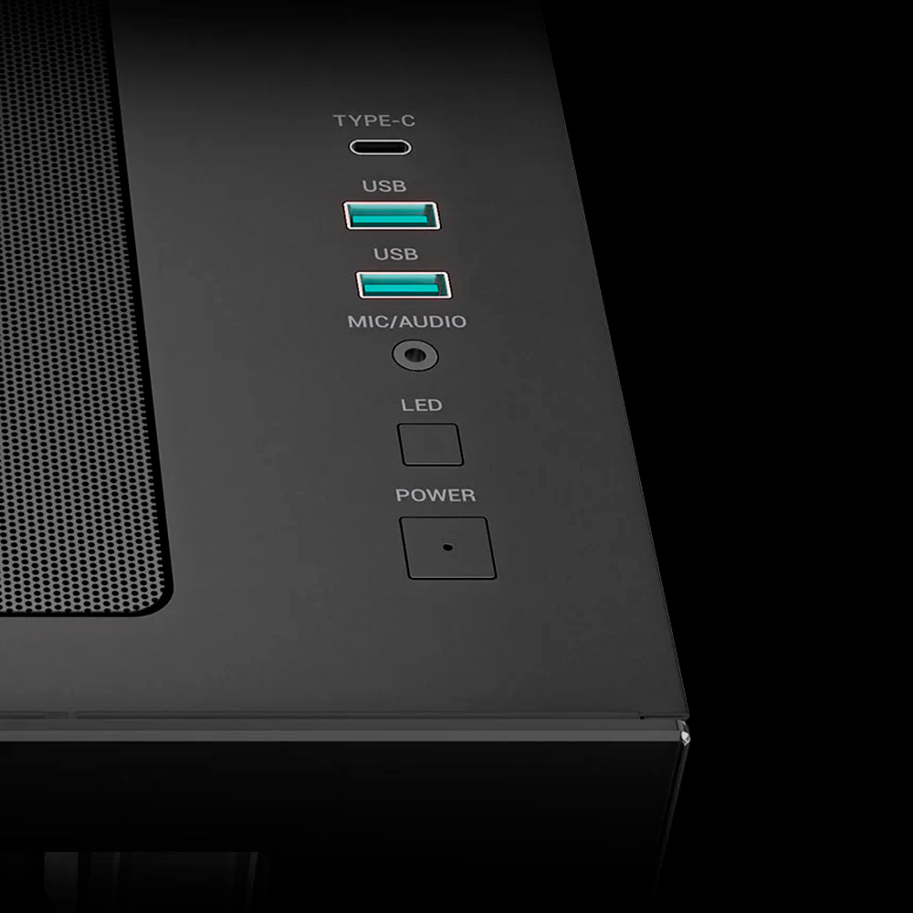 Кең құрылымымен және ойластырылған екі камералы құрылымымен бұл корпус керемет үйлесімділікті және оңтайлы желдетуді қамтамасыз етеді. Қуат блогы мен қатты дискілер үшін жеке ауа арналары қарастырылған, ал артқы орналасқан қосқыштары бар аналық платаларды қолдау арқасында ішкі кеңістік мінсіз таза және ұқыпты күйінде қалады.