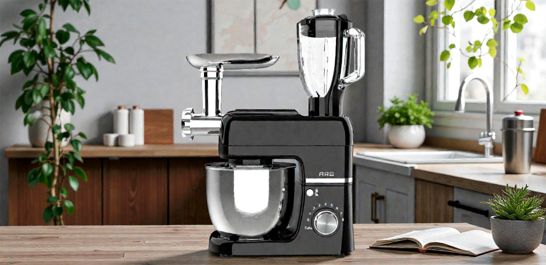 Ас үй машинасы, 5л тостаған, шайқау, К-саптама, қамыр ілгегі, ет тартқыш саптама, блендер саптамасы, кепілдік талоны, нұсқаулық