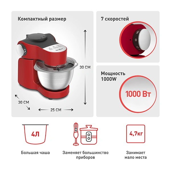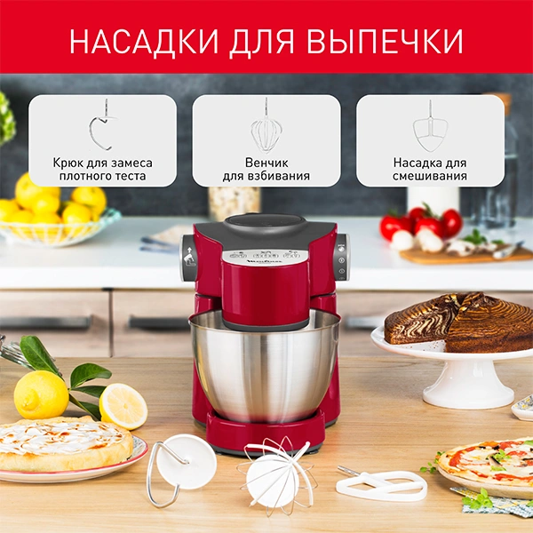 Кухонная Машина, Мясорубка, Для шинковки, Для шинковки мелкая, Для ломтиков, Стационарный блендер, Венчик для взбивания, Крюк для теста, Лопатка для перемешивания, документация, гаратния