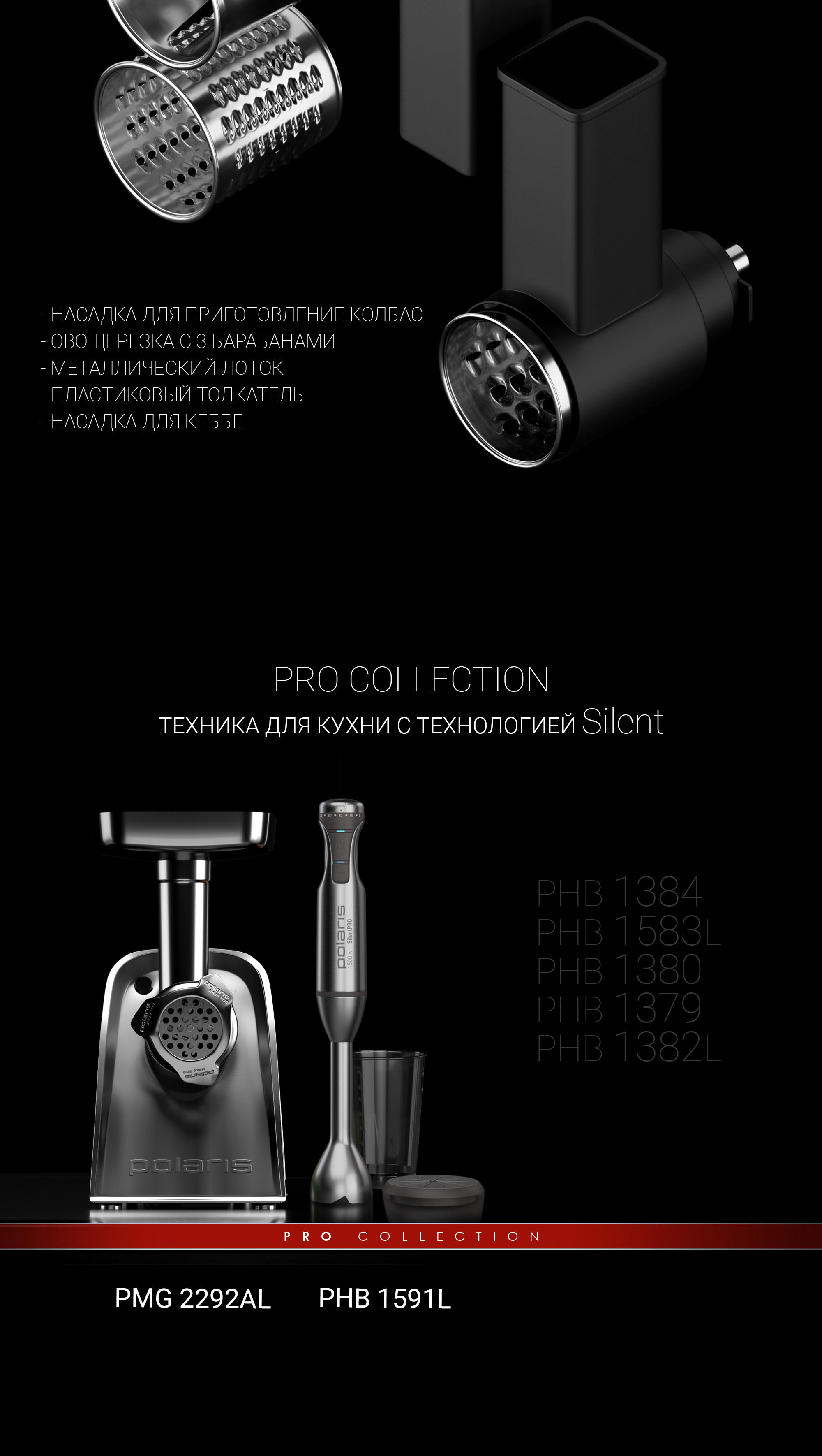 Ет тартқыш, тот баспайтын болаттан жасалған 3 тор (3 мм, 5 мм, 8 мм); 3 барабанмен көкөніс кескіш; металл науа; пластикалық итергіш; шұжықтарды пісіруге арналған саптама; кеббе қосымшасы. Нұсқау. Кепілдік картасы