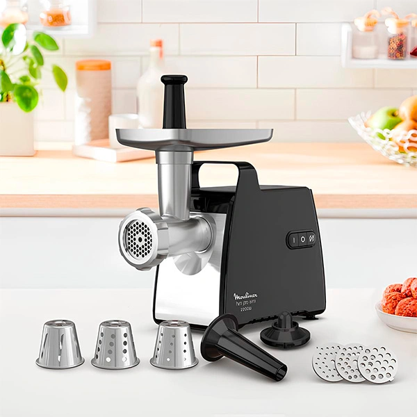 Мясорубка, 3 диска для фарша, толкатель, насадка для кеббе, 3 насадки-терки, документация