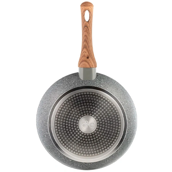Сковорода LARA PALERMO LR01-55-24 Функциональная линейка сковород LARA серии «Palermo» – это удивительное сочетание превосходного качества и внешней элегантности. Устойчивое к царапинам прочное внутреннее трехслойное и внешнее двухслойное антипригарное покрытие GRANIT с мраморной крошкой обеспечит длительную эксплуатацию. Для производства были подобраны экологически чистые материалы. Корпус выполнен из кованого алюминия и имеет отличные теплопроводные свойства. Эргономичная ручка с широким хватом выполнена из бакелита с покрытием Soft-Touch и отделкой под дерево. Стальное точечное индукционное дно подходит ко всем типам плит. Удобная петля для подвешивания. Характеристики: Диаметр 22 см, 24 см, 26 см, 28 см, 30 см Материал кованый алюминий Покрытие 3-слойное покрытие "Granit" Ручная мойка Использование в духовке нет Материал ручки Soft-touch, Бакелит Съемная ручка нет Дно индукционное, капсулированное