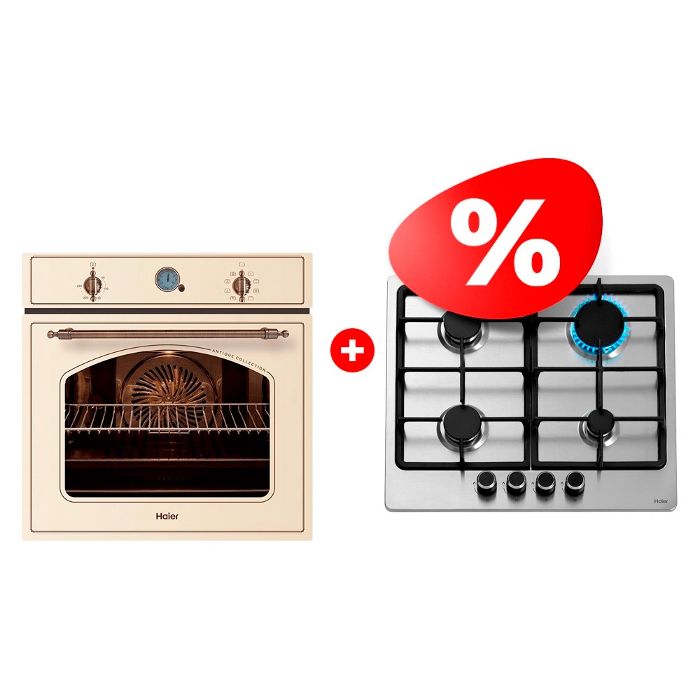 Жиынтық Встраиваемый духовой шкаф Haier HOX-C09ATQBC + Haier газ пісіру беті HHX-M64CNX