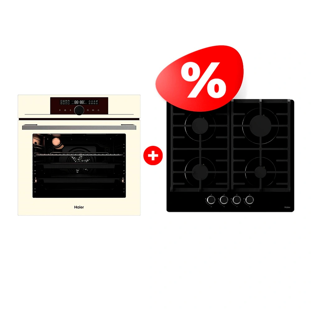 Жиынтық Встраиваемый духовой шкаф Haier HOX-FP5ACG + Haier газ пісіру беті HHX-G64CNB