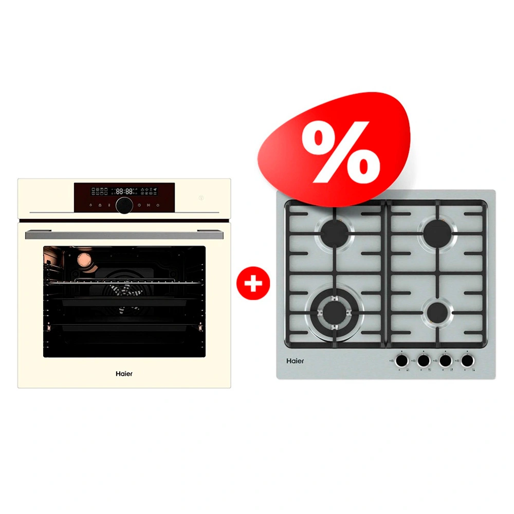 Жиынтық Встраиваемый духовой шкаф Haier HOX-FP5RACG + Haier газ пісіру беті HHX-M64CWFX