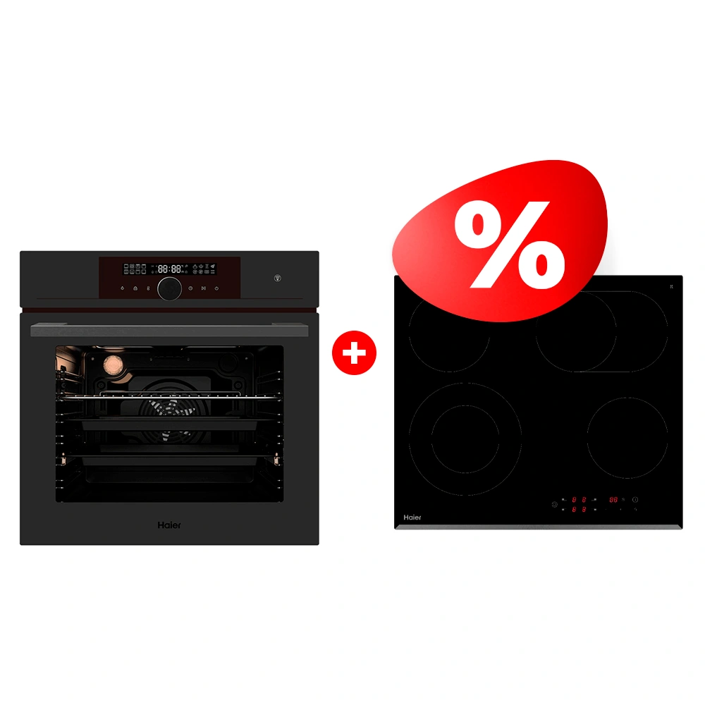Жиынтық Haier кіріктірілетін тұмша шкафы HOX-FP5RAGG + Haier шыны керамикалық плитасы HHY-C64ROVB